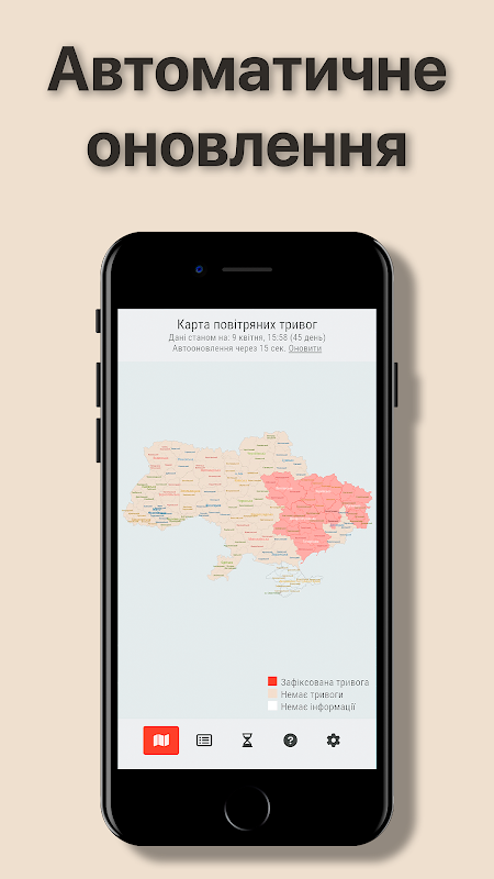 Встановіть застосунок Карта повітряних тривог для перегляду повітряних тривог за областями та районами України в реальному часі.