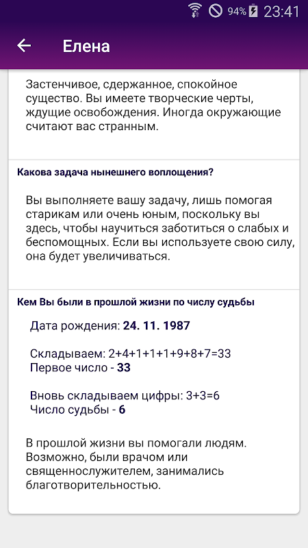 С помощью приложения "Кем был в прошлой жизни", Вы узнаете о прошлом воплощении по дате рождения. Узнать каким был в прошлом жизни человек, сможет дать ответы на многие вопросы, например Вы сможете понять от куда у Вас тяга каким либо определенным наукам или профессиям, может быть именно этот род деятельности, занятие в прошлом воплощении Вы выбрали, именно этим делом занимались в прошлой жизни.