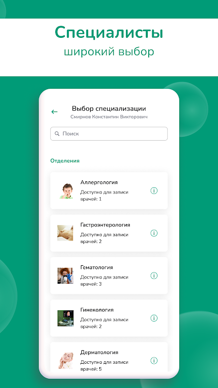 Phòng khám Gia đình “Sức khỏe” đã tạo một ứng dụng dành cho Bệnh nhân của mình, với sự trợ giúp của ứng dụng này, bạn luôn có thể độc lập chọn một cuộc hẹn thuận tiện cho mình với bác sĩ chuyên khoa mà bạn cần tại chi nhánh của phòng khám thuận tiện cho bạn, xem lịch sử các lần thăm khám của bạn và tất cả các quy trình y tế của các nghiên cứu trước đây cũng như các phân tích kết quả.