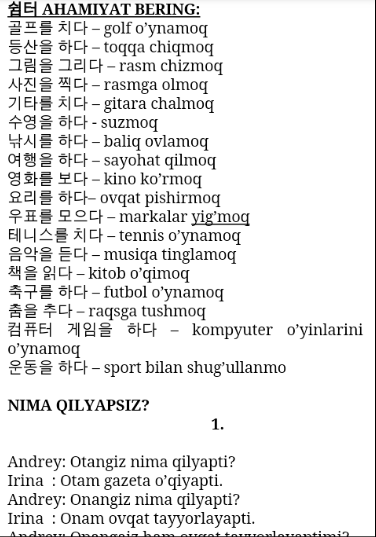 Корейс Тили ўқув қўлланмаси ҳурматли Корейс тили ишқибозларига яна бир фойдали манбаа бўлади.