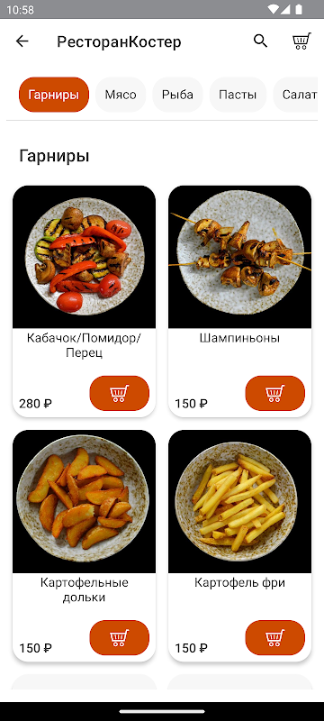 Trong ứng dụng di động của nhà hàng nướng Koster: - Sẽ có sẵn thực đơn tiện lợi