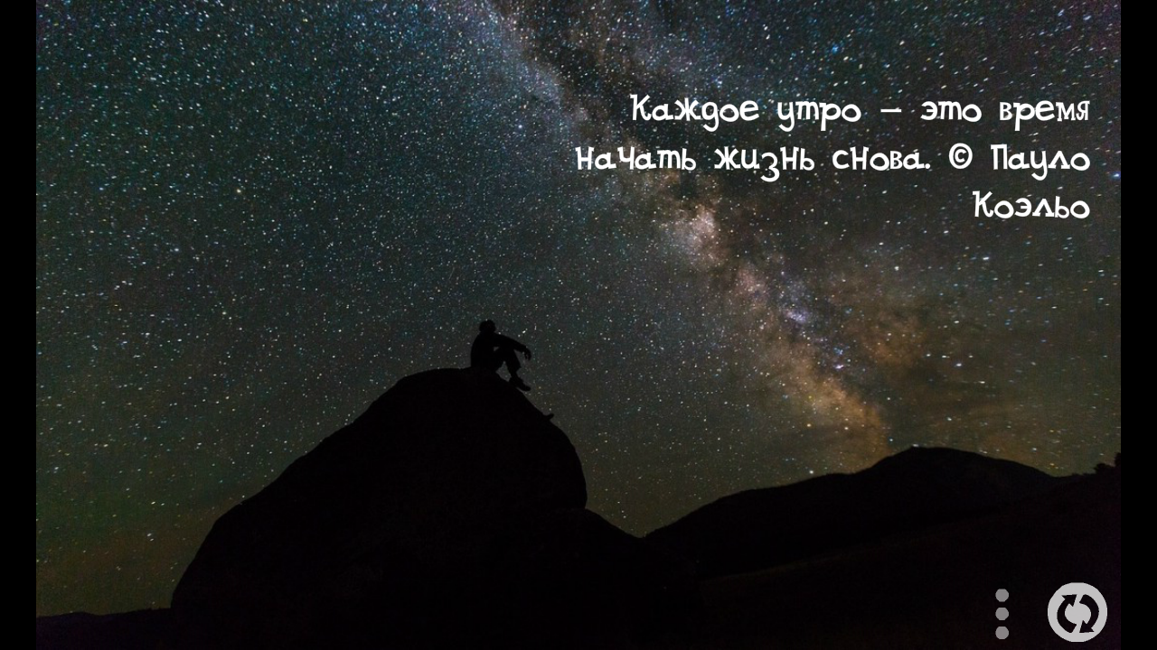Новинка в этом приложении! Вы можете на понравившемся фоне написать свой любой текст или цитату, а затем сохранить это изображение к себе на телефон (для этого нужно сначала открыть меню - три точки рядом с кнопкой обновления, затем нажать на значок с буквами "Ая" и в появившемся окне напечатать свой текст!)