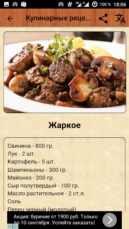 Для просмотра рецептов не требуется подключение к интернету.