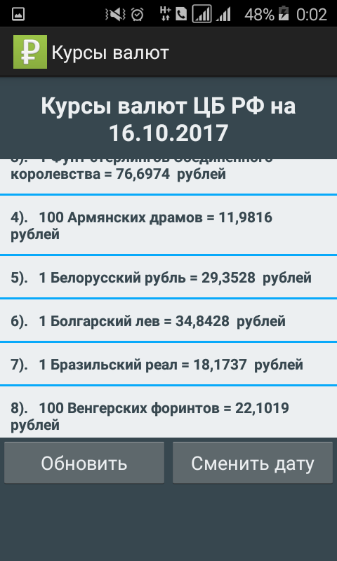 По умолчанию используется текущая дата, для смены даты используйте кнопку "Сменить дату".