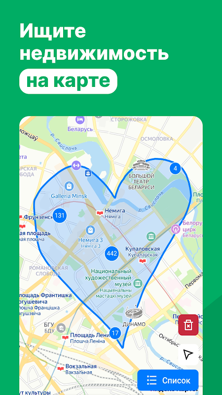 Belarus - nhìn vào phần Bất động sản của chúng tôi. Minsk có nhu cầu lớn cho thuê căn hộ và phòng, do đó, thuê hoặc thuê nhà ở thông qua Kufar không phải là vấn đề. Tất nhiên, cho thuê và mua nhà ở tại các trung tâm khu vực và các thành phố khác của Belarus cũng có sẵn. Bạn đang tìm kiếm nhà ở ngoại ô? Các cabin, nhà tranh, trang viên, trang trại - mọi thứ đều nằm trên bản đồ thuận tiện.
