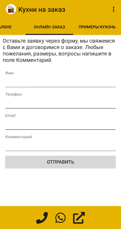 Phụ lục này trình bày chức năng nào có thể được phát triển cho người bán nhà bếp tùy chỉnh bằng cách sử dụng dịch vụ tạo GiveMeApp. Muốn có cùng một ứng dụng? Truy cập dịch vụ GiveMeApp và tạo ứng dụng của bạn bằng cách sử dụng một hàm tạo thuận tiện miễn phí!