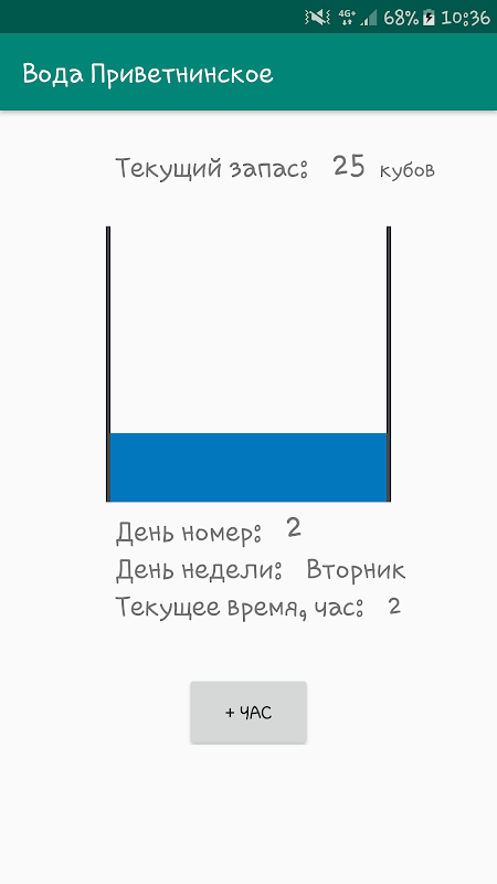 Một mô hình trực quan về mức tiêu thụ nước trong bể chứa cho cư dân của ngôi làng Privetninskoye của Vùng Leningrad