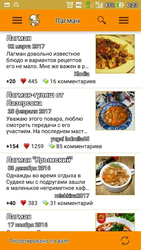 • изысканный лагман по многочисленным семейным рецептам пользователей кулинарного портала Поваренок.ру.