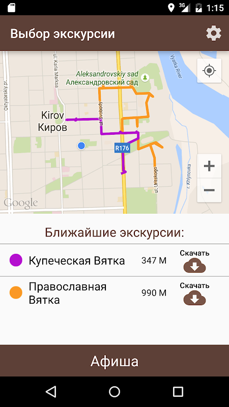 Легенды Старой Вятки - это электронный гид по культурным достопримечательностям города Киров. Приложение позволяет пройтись по маршрутам, составленным профессиональными экскурсоводами. Каждый маршрут описывает отдельную тему, например Вы можете посетить православные храмы города или окунуться в мир дореволюционного купечества.