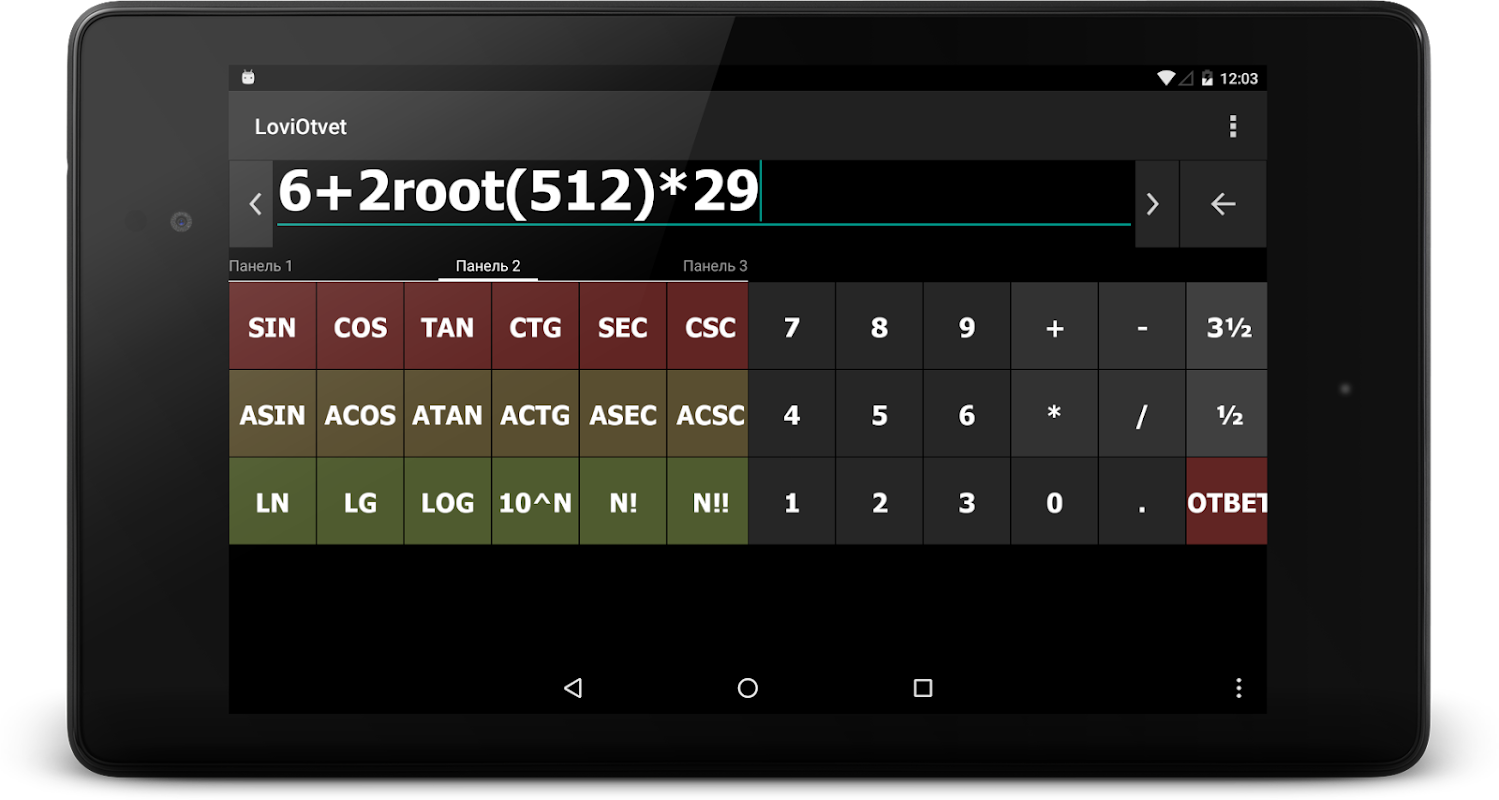 Калькулятор ЛовиОтвет решает математические примеры и уравнения с отображением этапов решения, производит наглядно вычисления "в столбик". Вас приятно удивит результат решения - на разлинованном тетрадном листе вы увидите все что должен написать ученик или студент для решения примера. Отлично подходит как для проверки уже выполненных заданий, так и для, непосредственно, их выполнения.