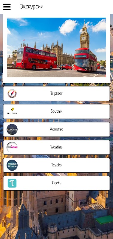Trong ứng dụng này, bạn có thể làm quen ban đầu với London, chọn địa điểm du lịch bằng cách xem các điểm tham quan và video đánh giá. Ứng dụng này cũng chứa thông tin về các đại lý du lịch và khách sạn cung cấp dịch vụ của họ ở London.