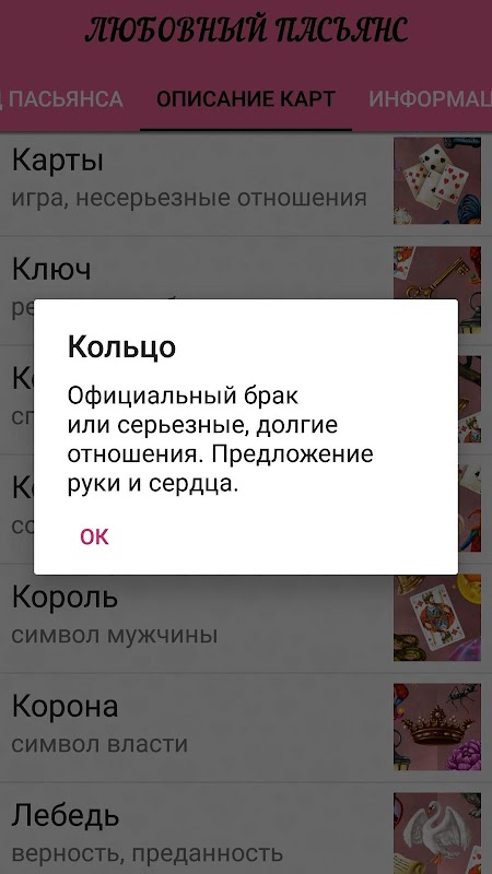 На этом пасьянсе мы рассматриваем любовные вопросы, вопросы взаимоотношений. Прежде всего, нужно сконцентрироваться и четко задать вопрос. Много вопросов сразу лучше не задавать.