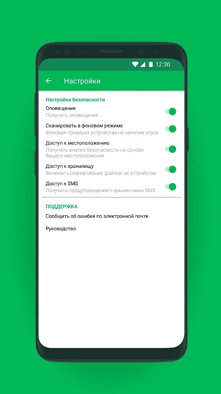— Доступ к SMS: для сканирования и выявления вредоносных ссылок на фишинговые ресурсы в сообщениях на девайсе.