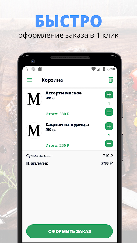 -возможность заказать первые и вторые блюда, напитки, десерты в одном месте