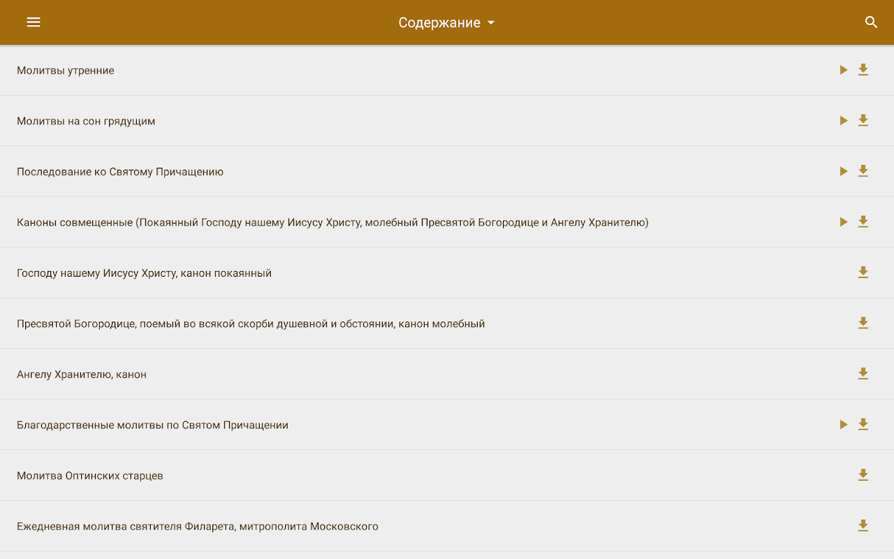 Ngoài việc đọc những lời cầu nguyện, bạn có thể nghe một số trong số họ, cũng như cho phép đồng bộ hóa việc đọc với văn bản.