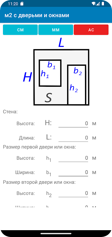 Diện tích có thể được tính toán có tính đến cửa sổ và cửa ra vào.