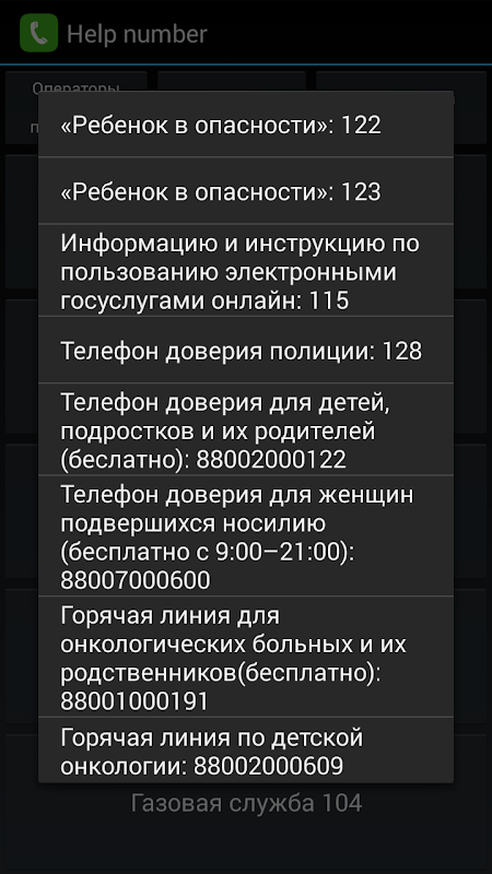 Программа с быстрыми номерами служб(112, полиция , пожарные, скорая помощь) и поддержки операторов.С быстрым вызовом нужной.