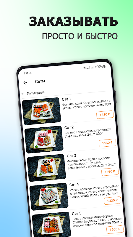 Trong ứng dụng của chúng tôi, bạn có thể đặt sushi, bánh mì cuộn, pizza, chảo wok, shawarma, gyro, khoai tây chiên và các món ăn khác.