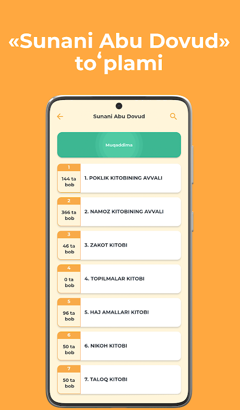 Kelgusid “Zhomeyi Termiziy”, “Muzhtaboi Nasoiy”, “Sunani Ibn Mozha”, “Muvattoi Molik”, “Sunani Dorimiy”, “Sahhihi Ibn Hibbon” tuplamlarini ham zhoylash rezhalashtirilgan.