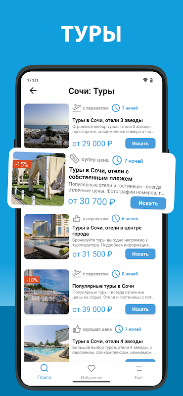 Chúng tôi đã thu thập tất cả các ưu đãi có sẵn từ các công ty du lịch và công ty lữ hành, có giá trị trong một khoảng thời gian nhất định hoặc được phân phối với giá đặc biệt. Nếu ưu đãi không liên quan, bạn có thể độc lập chọn ngày khởi hành và thành phố thuận tiện, số ngày, danh mục khách sạn và các thông số khác sẽ giúp bạn chọn những phương án thuận tiện nhất. Các chuyến tham quan vào phút cuối, ưu đãi đặc biệt, khuyến mãi và giảm giá được đánh dấu bằng các biểu tượng màu đỏ và theo chủ đề.