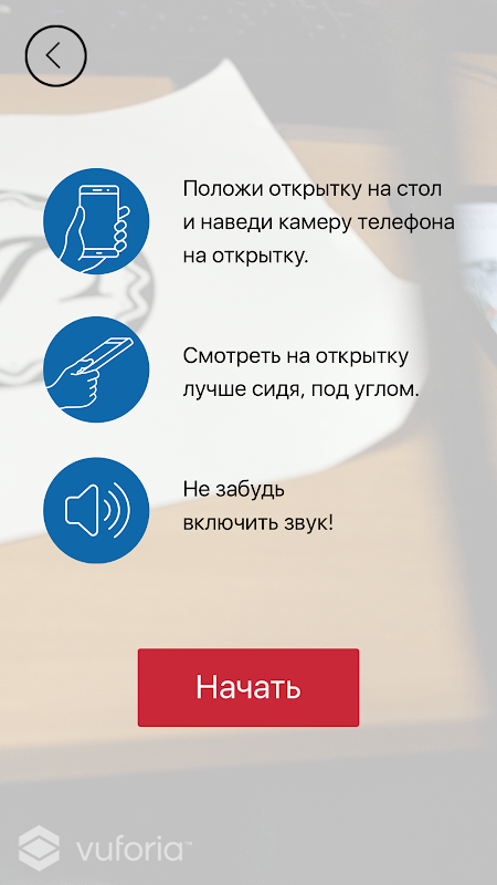 Праздничная открытка окутает вас чарами технологий дополненной реальности. В приложении вы сможете помочь Деду Морозу сыграть известную мелодию.
