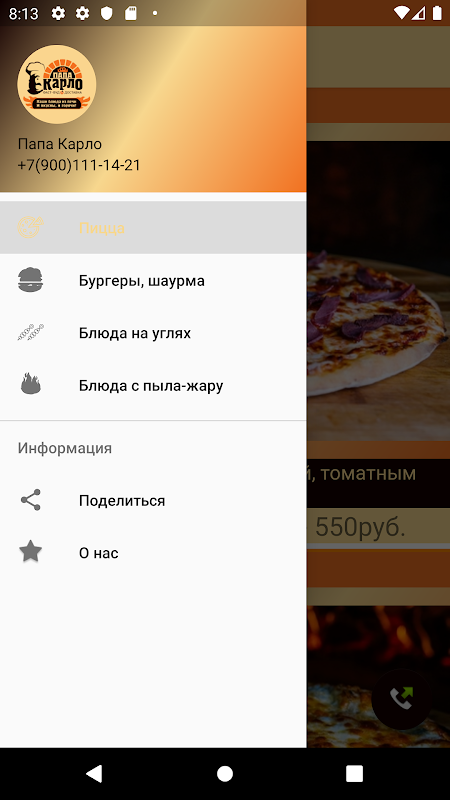 Меню кафе "Папа Карло" . Доставка фаст-фуда по городу Кимры. От 500 рублей бесплатно... Меню в приложении...