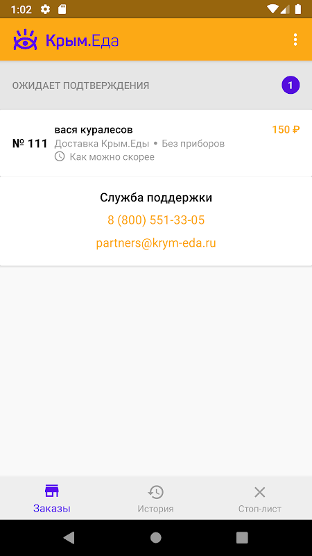 Sử dụng ứng dụng Partner Crimea.Food, bạn có thể tổ chức nhận và quản lý đơn hàng thông qua hệ thống phân phối thức ăn nhanh Crimea.Food.