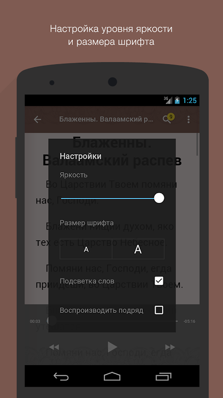· Dễ dàng chuyển đổi giữa các audiosbornikami chuyên đề chính thống thông qua trình đơn thả xuống;