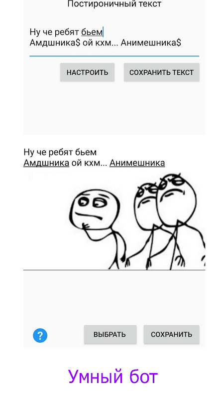 Создавайте самые постироничные картинки, даже почти не мысля за постиронию. У нас есть много шаблонов, для создания постиронии и умный бот, который умеет делать все, чтобы ваша потирония не стала кринжом. Скачивайте и обновляйте свою библиотеку для высокоинтеллектуального стопа.