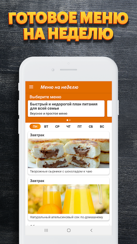 Chúng tôi đã thu thập các công thức nấu ăn ngon và đơn giản mà bạn có thể làm hài lòng bạn bè và người thân của bạn. Ứng dụng này cho phép bạn tạo một thực đơn trong tuần dưới dạng lịch công thức nấu ăn và hiển thị các công thức nấu ăn đơn giản cho mỗi ngày.