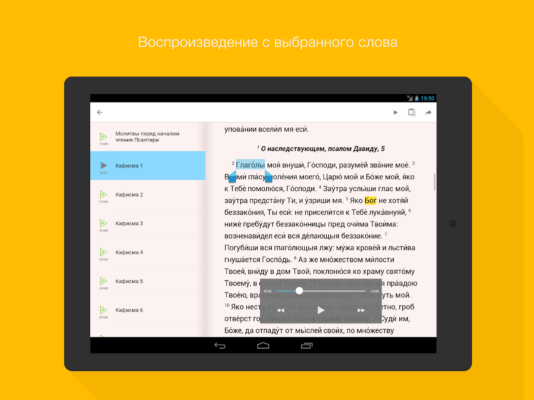 · Dễ dàng chuyển đổi giữa các audiosbornikami chuyên đề chính thống thông qua trình đơn thả xuống;
