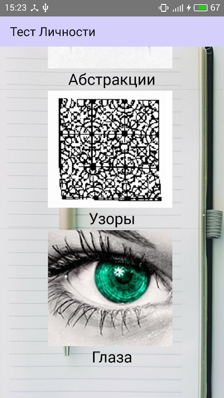 Психологический тест личности относится к быстрым психологическим тестам, прохождение которого не займёт много времени. Он составляет ваш психологический портрет на основе выбранного вами изображения из списка. Содержит в себе несколько разных тестов с набором картинок(Абстракции, Деревья и тд.).