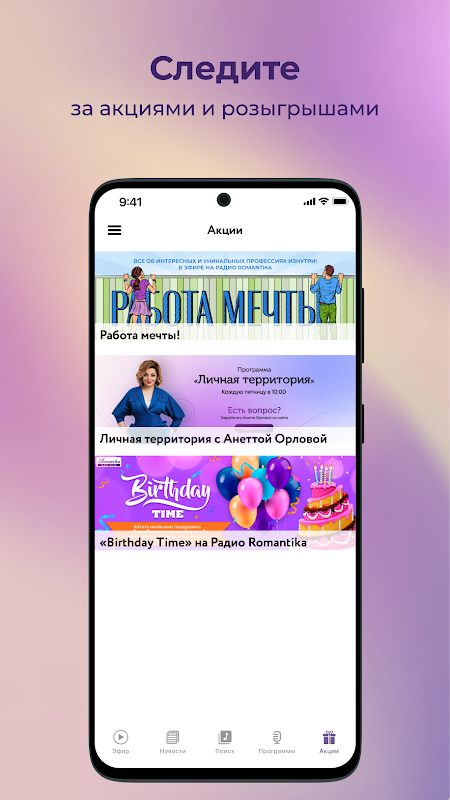 Các đài phát thanh là một nguồn cảm xúc và cảm hứng cho tất cả "lãng mạn" của thời đại chúng ta, đối với một người thành công và tài năng sống trong bước với tốc độ hiện đại của cuộc sống, trân trọng những giá trị lâu dài của cuộc sống. âm nhạc lựa chọn cẩn thận tạo ra trong người nghe một, tâm trạng cao tích cực.