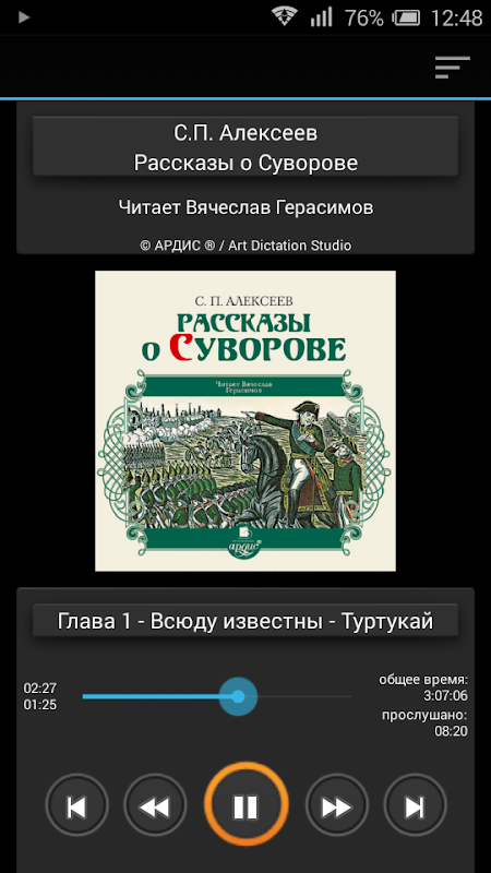 Audiobook "Tales of Suvorov," tạo ra trong phòng thu ARDIS chuyên gia về các tác phẩm của lịch sử nước Nga và nhà văn trẻ em tuyệt vời của Sergei Petrovich Alekseev - hành trình sống động và hấp dẫn về quá khứ của đất nước chúng ta. những câu chuyện nghe có vẻ khơi dậy sự quan tâm của trẻ em trong việc nghiên cứu lịch sử dân tộc, dạy để tự hào về tổ tiên của mình, mang lên lòng yêu nước.