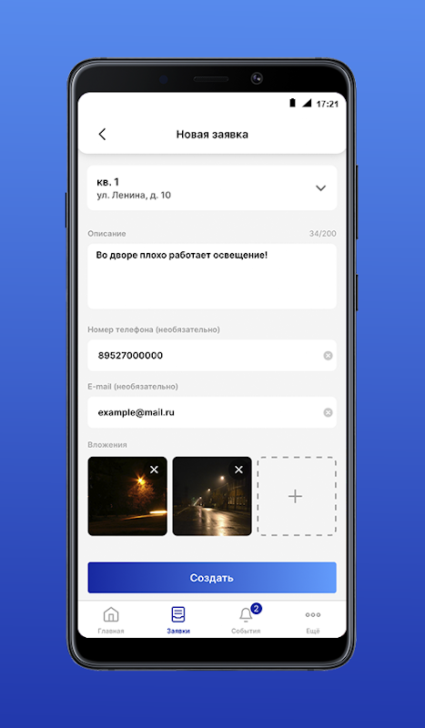• Отправлять заявки в управляющую компанию и полностью контролировать процесс их обработки
