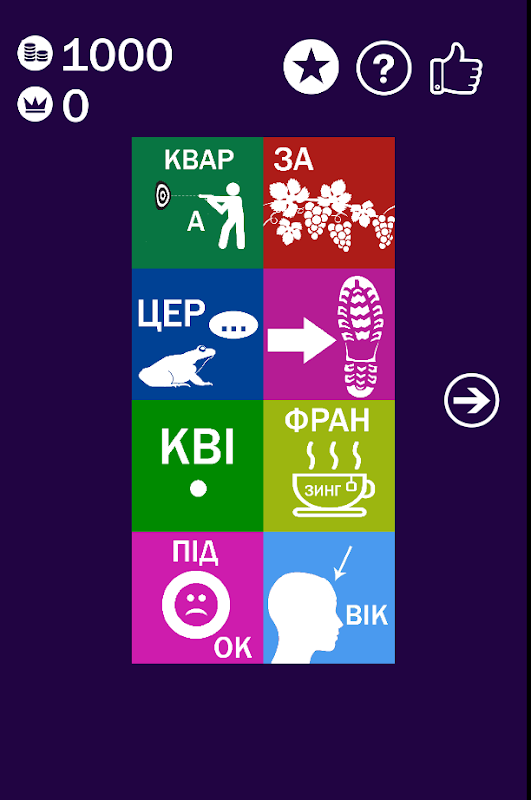 *Якщо рівень виявиться занадто складним - можна використовувати підказки. Монети для їх можна заробити шляхом публікації ваших загадок у Фб та Вк!