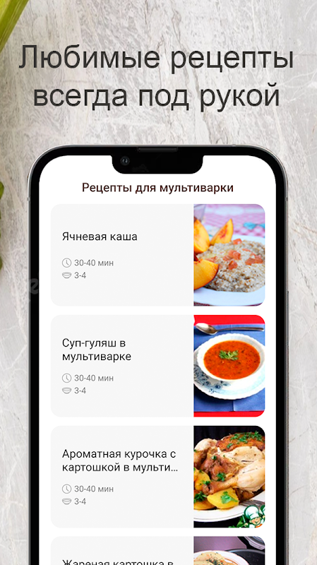Công thức nấu ăn được sử dụng trong các ứng dụng được lấy từ trang web: povarenok.ru, multivari.ru.