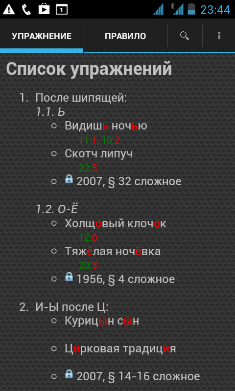 Trong phụ lục này, tất cả các lỗi chính tả với chính tả cạnh tranh (ví dụ: H - HH hoặc với b sau khi rít) được giảm xuống một bài tập. Điều này cho phép bạn nhanh chóng học cách phân biệt giữa dấu hiệu nhận dạng của các quy tắc chính tả , để củng cố và giữ các kỹ năng này.