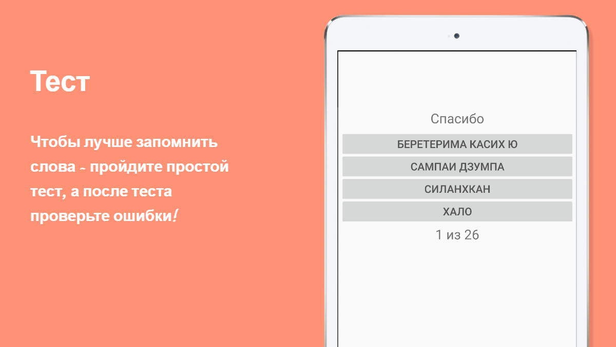 Приложение позволить Вам сделать первый шаг к изучению языка, заинтересовать вас, а дальше уже Вам решать - ограничиваться только разговорными фразами на русском языке, или идти дальше, изучая грамматику, лексику и синтаксис.
