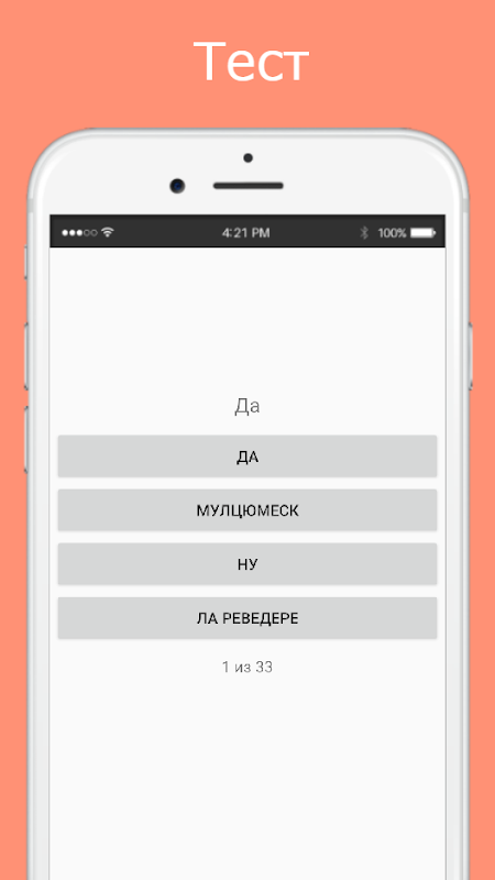 После прохождения теста по выбранной теме, можно просматривать ошибки. Также, результат прохождения теста по каждой из тем сохраняется, ваша цель - выучить все слова в выбранной теме на 100%.