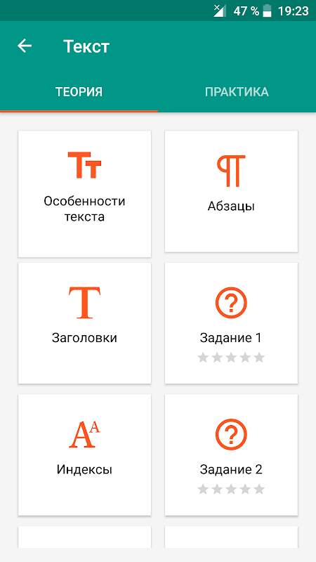 Размер шрифта в уроках можно плавно менять.