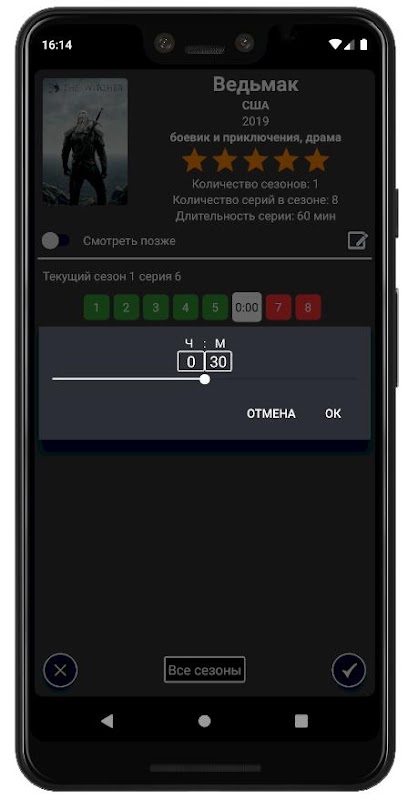 Ứng dụng Serialoman sẽ cho phép bạn tiết kiệm thời gian và dây thần kinh, cũng như nhắc nhở tập phim bạn đã dừng lại, điều chính là đừng quên đánh dấu điều này trên thiết bị di động của bạn, nó luôn ở trong tầm tay.