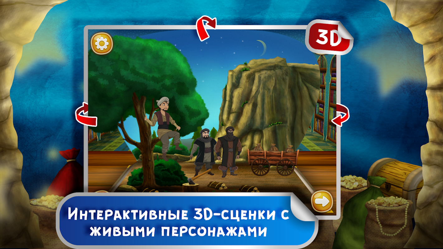 Đông fairy tale từ cuốn sách "Một Nghìn lẻ một đêm" cho bạn biết một ngày nào đó các chàng trai trẻ Ali Baba phát hiện ra bí mật của tên cướp, người trong nhiều năm cướp bóc các đoàn caravan. Nói cụm từ kỳ diệu "Sim-Sim, mở ra!", Ali Baba đi vào kho bạc của tên cướp. Mang theo anh ta một ít vàng, ông trở về nhà, nói với tất cả mọi thứ để anh trai Qasim, một người lười biếng và tham lam. Không đồng ý chia sẻ Ali Baba mang vàng, Kasim ông đi vào kho bạc. Chỉ bây giờ không thể có được ra khỏi đó: từ ma thuật ... quên làm thế nào để đối phó với họ tên cướp, họ sẽ muốn trả thù Ali Baba? Về tất cả điều này bạn có thể tìm hiểu bằng cách tải về các câu chuyện cổ tích tương tác "Ali Baba và 40 Thieves".