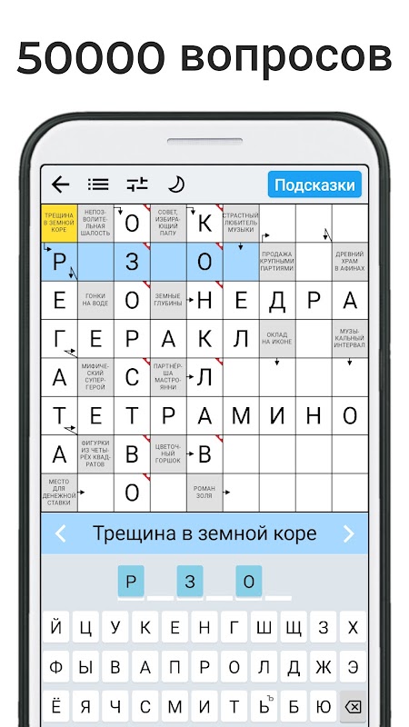 Scanwords - giao diện thân thiện với người dùng, gợi ý không giới hạn. Hoạt động mà không có Internet.
