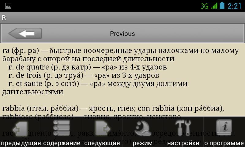 Do sự gia tăng của các thuật ngữ âm nhạc ở châu Âu từ điển ngôn ngữ khác nhau trở thành dịch trong thời gian của chúng ta về tầm quan trọng thực tế đáng kể. Thể loại này thuộc về từ điển này. Nó chứa các từ ngữ nước ngoài phổ biến nhất được sử dụng trong thực hành âm nhạc của chúng tôi bằng tiếng nước ngoài (tiếng Latin), viết, và cung cấp một bản dịch tóm tắt sang tiếng Nga. Từ điển dành cho các nhạc sĩ chuyên nghiệp - người biểu diễn, nhà soạn nhạc, nhà lý luận, nhà sử học, giáo viên, học sinh, và một loạt các người yêu nghệ thuật.