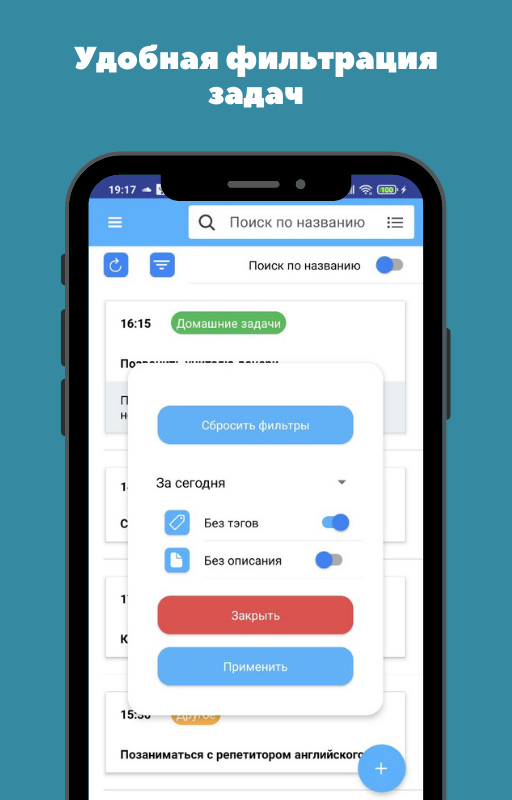 Удобный и интуитивно понятный интерфейс Task Manager, поможет вам не только сохранить все задачи, но и повысит вашу продуктивность.