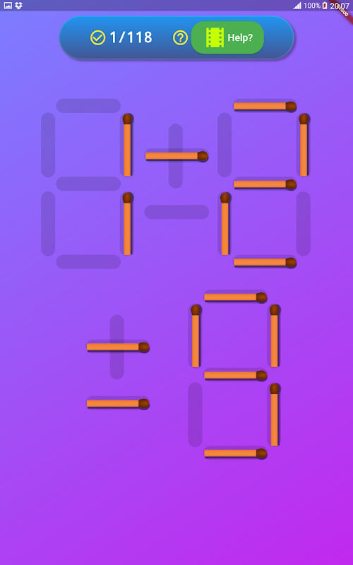 ✓ Вначале подумайте какое решение вы сможете предложить, затем переставляйте спичку на нужный слот, чтобы получить верное равенство, игра автоматически проверит ваше решение