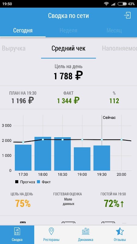 Terminal Giám đốc MENUFORYOU - một giải pháp mà làm cho nó có thể bất cứ lúc nào và trên thế giới, hãy xem phần "Dự báo và Progress" để hoàn thành% kế hoạch bán hàng cho từng nhà hàng và tiến độ tổng thể của mạng, tìm hiểu những gì bán sẽ được trong tương lai gần, và cũng để viết một tin nhắn nhân viên (bồi bàn, quản lý), cũng như xem đánh giá của khách hàng (khi sử dụng một hệ thống menu hoặc lòng trung thành điện tử).