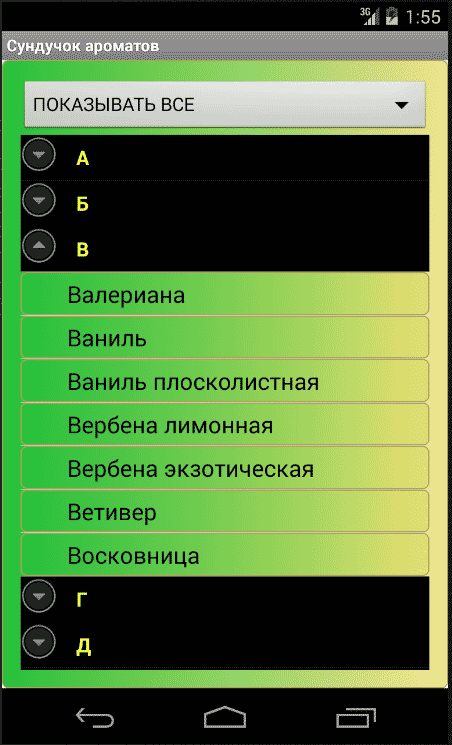 Ứng dụng này có chứa một tham chiếu đến các mô tả của khoảng 160 loại tinh dầu.