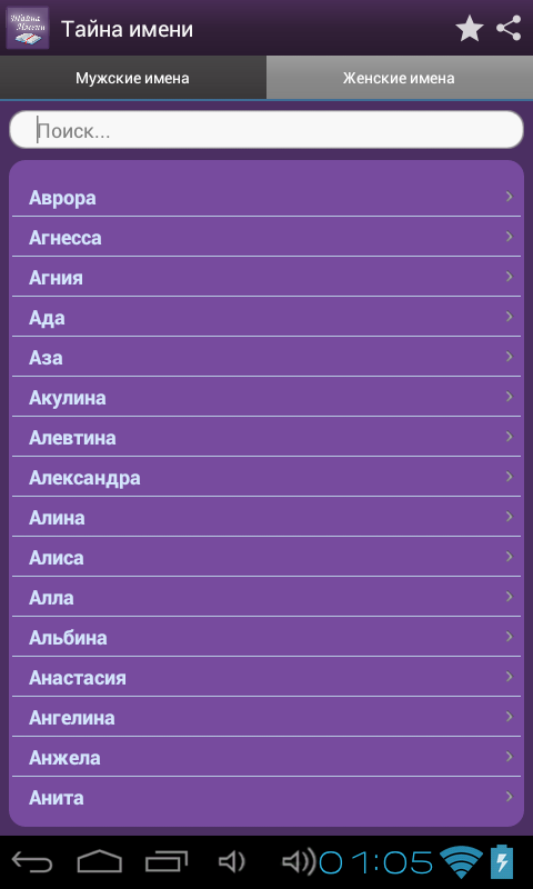 С помощью нашего приложения Вы можете узнать тайный смысл своего имени или подобрать наиболее подходящее имя для своего ребенка.